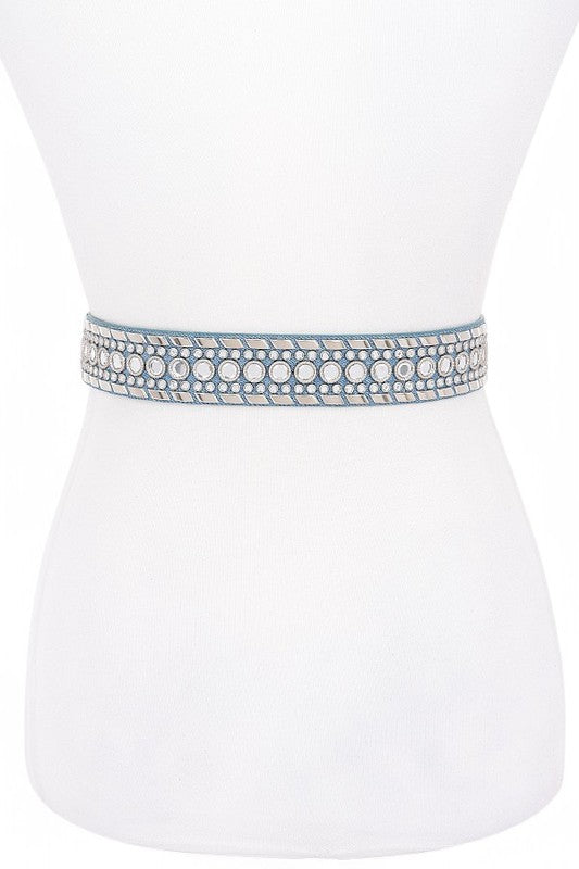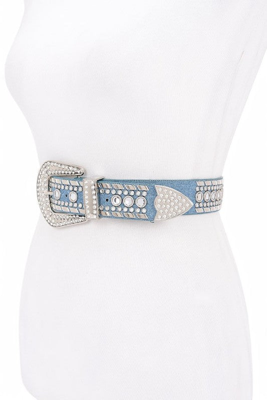 Elevate your style with the Mix Stud Rhinestone Denim Western Belt, designed to add a bold, fashionable touch to any outfit. Crafted from durable polyurethane and denim, this belt features a striking mix of metal studs and rhinestones that catch the light for a standout look. Sized at 1.5 inches wide and 43 inches long, it’s designed to fit comfortably while enhancing your waistline. Lead and nickel compliant, it ensures safety and quality. Enjoy reliable shipping within 5-10 business days and transform your wardrobe with this eye-catching western-inspired accessory.